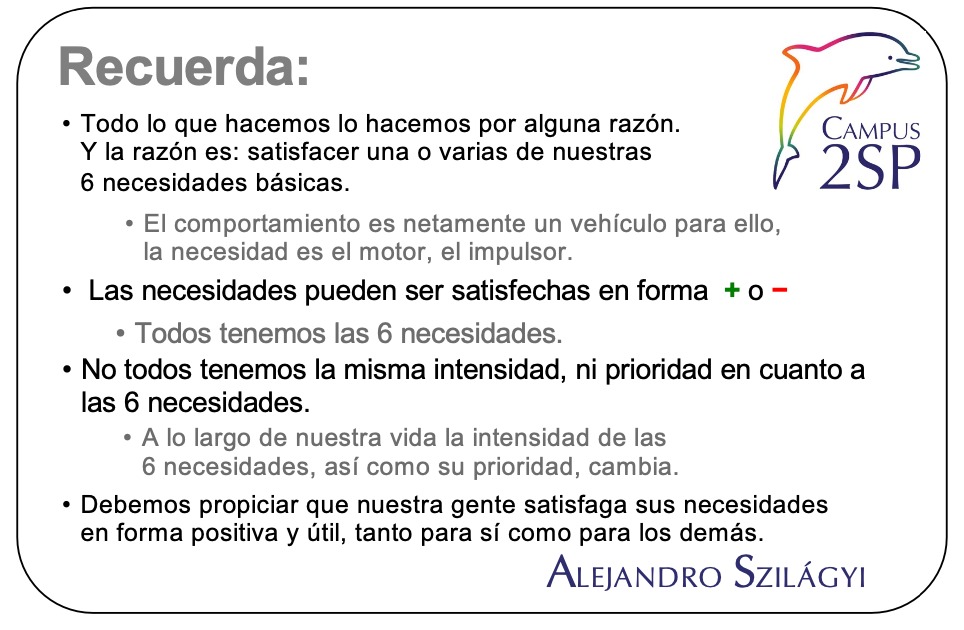 - Todo lo que hacemos lo hacemos por alguna razón, y la razón es satisfacer una o varias de nuestras 6 necesidades.